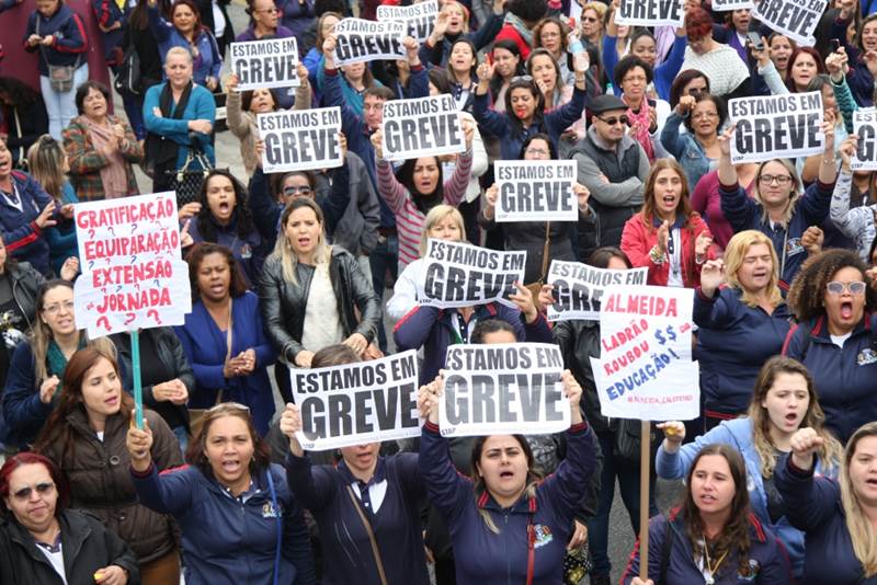 A greve, que começou desde a última segunda-feira (25), dia da volta às aulas na rede municipal, reuniu uma média de 2,5 mil professores já atinge 136 escolas municipais da cidade.