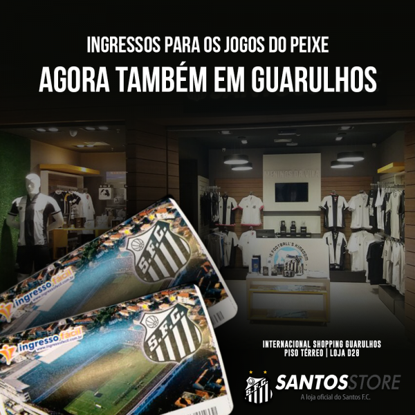 A loja do Santos,  localizada no Internacional Shopping, terá venda de ingressos para os jogos do peixe, começando para a partida do próximo domingo, 14, contra o Atlético Mineiro, na Vila Belmiro, válido pela 20º rodada do Campeonato Brasileiro.