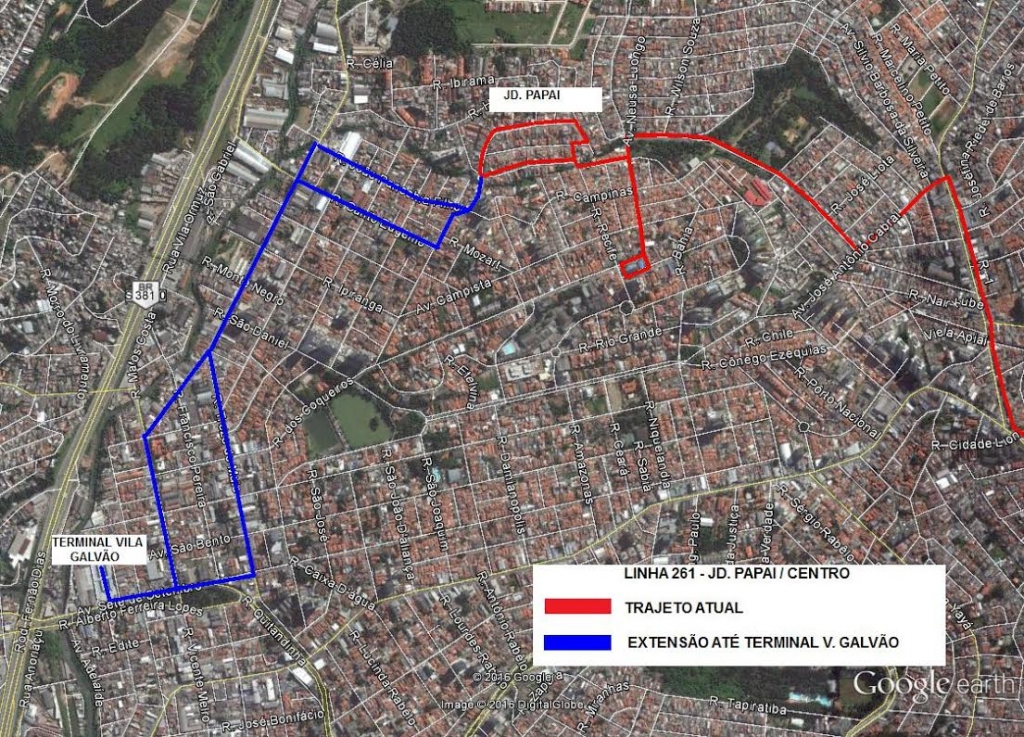 A linha 261-Jardim Papai/Centro, terá seu trajeto alterado a partir deste sábado, com seu ponto final sendo alongado até a região da Vila Galvão, passando pelas ruas João Panocchia Filho, além da avenida Pedro de Souza Lopes.