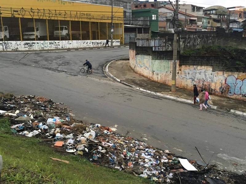 O lixo vem se acumulando porque muitas pessoas passam no local e acabam jogando o entulho, além de entupir o córrego, o lixo e água acumulada, pode servir para a propagação de focos do mosquito da dengue.