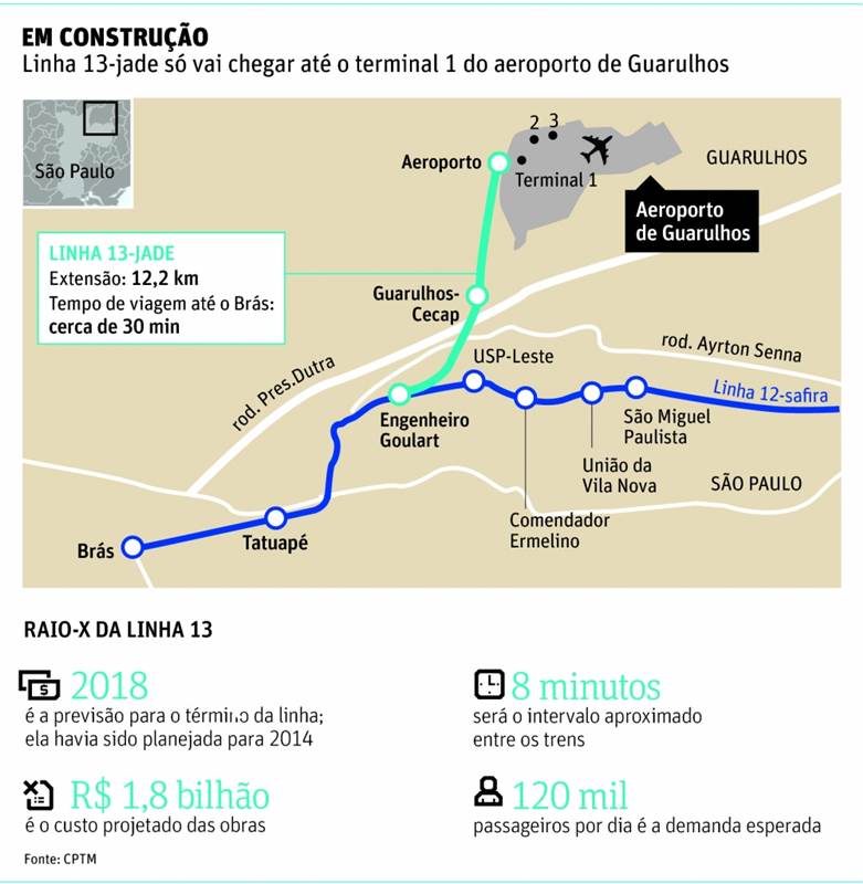 Após sucessivos atrasos, a ligação sobre trilhos entre a cidade de São Paulo e o aeroporto de Cumbica, em Guarulhos, deve ser inaugurada no primeiro semestre de 2018. Mas os passageiros otimistas com o novo prazo já devem se preparar para lidar com improvisos no trajeto do desembarque do trem à entrada dos terminais de voo.