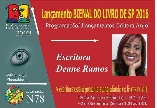 Para prestigiar o lançamento de seu livro, Deane Ramos estará autografando nesta segunda, das 11 às 12h, e também no dia 2 de setembro, das 12 às 13h. Além deste livro, a escritora planeja lançar mais dois outros livros, obras que estão em andamento, além da continuidade deste primeiro.