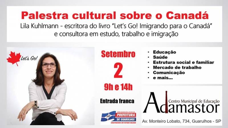 Nesta sexta-feira, 2, a escritora Lila Kuhlman, irá conceder uma palestra no Adamastor a respeito da cultura do Canadá, lembrando que Lila publicou um livro chamado “Let’s Go! Imigrando para o Canadá”, se tornando consultora nos assuntos de imigração, trabalho, consultoria e estudo. Durante a palestra, você irá conhecer um pouco sobre a educação, saúde, estrutura social e familiar, mercado de trabalho, comunicação e outras curiosidades sobre o Canadá.