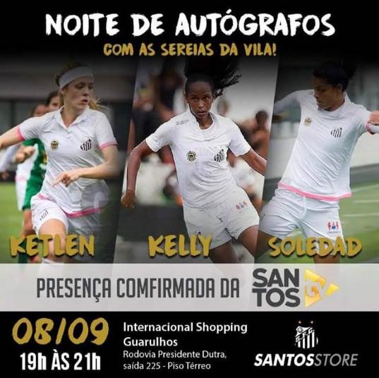 É aproveitando a imagem do futebol feminino após a participação nas olimpíadas, que a loja do peixe leva até você as três atletas para uma noite de autógrafos das 19h às 21h, na Santos Store, localizada no piso térreo do Internacional Shopping Guarulhos.
