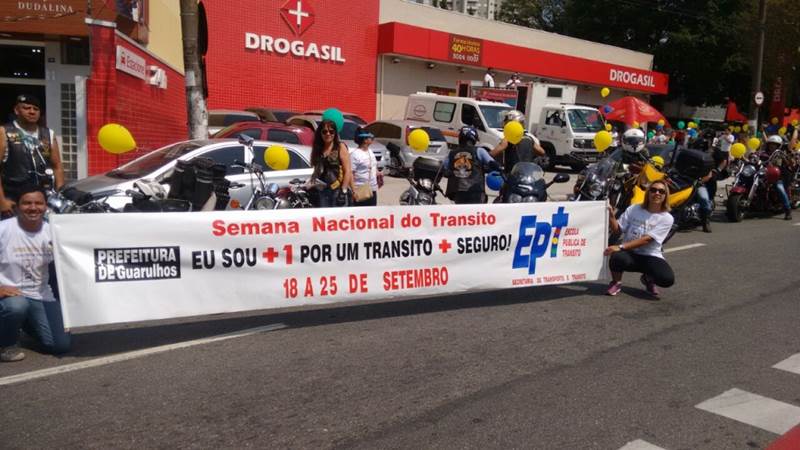 Com o tema “Eu sou mais um por um trânsito mais seguro” teve início no sábado (18) a Semana Nacional do Trânsito. Em Guarulhos, dois eventos praticamente simultâneos abriram o evento, que tem programação extensa até domingo (25). O secretário de Transportes e Trânsito, Atílio André Pereira, participou da caminhada da 3ª Idade, que fechou a Semana do Idoso e abriu a Semana do Trânsito junto com a Motociata, em prol da redução dos acidentes com motocicletas.