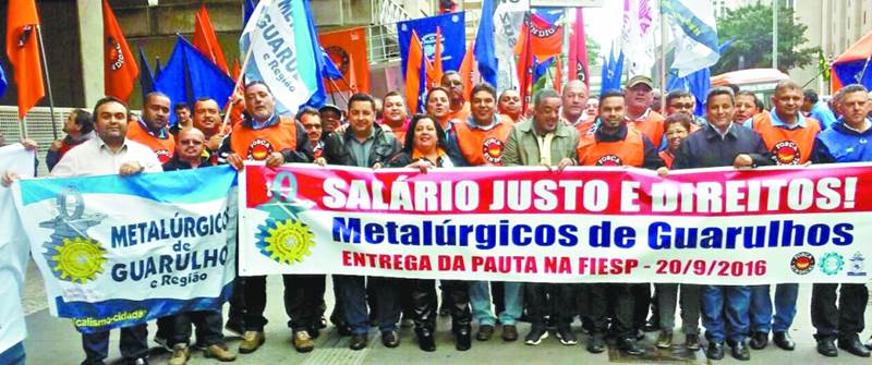 A pauta entregue pleiteia reposição das perdas salariais, aumento real, manutenção das cláusulas da Convenção, melhores condições de trabalho e geração de emprego, entre outras. A categoria cobra, ainda, menos juros e retomada do crescimento econômico. Há cerca de setecentos mil metalúrgicos no Estado, representados por 54 Sindicatos, liderados pela Federação da categoria e a Força Sindical. A data-base é 1º de novembro; a campanha é unificada. “Vamos lutar, mais uma vez, por aumento real e renovação das cláusulas da Convenção Coletiva, que são conquistas obtidas ao longo de anos de luta”, afirmou Josinaldo José de Barros (Cabeça), presidente em exercício do sindicato.