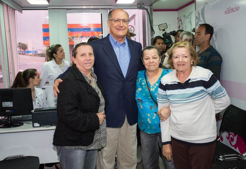 O governador Geraldo Alckmin lançou nesta terça-feira, 4 de outubro, campanha comemorativa ao Outubro Rosa, mês dedicado à conscientização e prevenção do câncer da mama. O lançamento aconteceu durante visita à carreta do programa Mulheres de Peito, estacionada no shopping Aricanduva, que oferece exames de mamografia gratuitos. O veículo, da Secretaria da Saúde, oferece mamografias sem a necessidade do pedido médico para mulheres entre 50 e 69 anos de idade. Pacientes fora dessa faixa etária também podem receber atendimento, desde que tenham em mãos um pedido médico emitido tanto pela rede pública quanto particular.