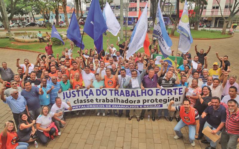 Criada em 1934, por Getúlio Vargas, a Justiça do Trabalho resolve problemas nas relações de trabalho e garante respeito a direitos. Cabeça ressalta: “As reformas que o governo está tentando impor são pra escravizar o trabalhador. Temer quer desmontar as conquistas da Constituição e da CLT”. Após o ato na praça, os sindicalistas se dirigiram à Justiça do Trabalho, na avenida Tiradentes, onde entregaram Carta Aberta à juíza da 2ª Vara, dra. Maria de Fátima Alves Rodrigues Bertan. Além dos Metalúrgicos de Guarulhos e São Paulo, participaram Servidores de Guarulhos, Têxteis, Alimentação, Aposentados e Condutores.