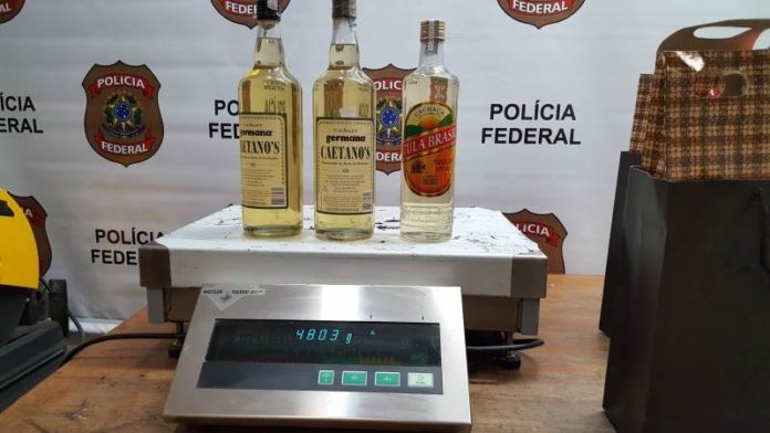 A Polícia Federal apreendeu 15kg de cocaína, além de sete cubanos que tentavam embarcar com passaportes e vistos falsos. Nesta terça-feira, os policiais abordaram uma mulher que tentava embarcar para Barcelona, na Espanha, no qual foi conduzida para uma entrevista após apresentar suspeitas na fila de check-in. Dentro da mala da moça, foram encontrados três garrafas de cachaça, com cocaína diluída, totalizando quase 5kg de cocaína.