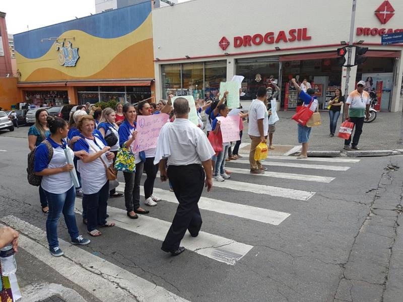 Os professores começaram a concentração por volta das 15h no calçadão do Centro para protestar contra a falta de pagamento de uma ajuda de custo da Prefeitura, no valor de R$ 550,00 por mês. Esta não é primeira vez que ocorre o atraso, mas dessa vez, os professores estão três meses sem o pagamento.