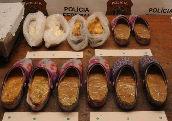 Um passageiro angolano foi preso no sábado (26) com quase 4 Kg de cocaína escondidos em 6 pares de chinelos. O homem de 27 anos de idade já havia despachado suas malas, mas os policiais identificaram a droga com o auxílio do raio-x no porão de bagagens. Ele foi localizado e preso na sala de embarque.