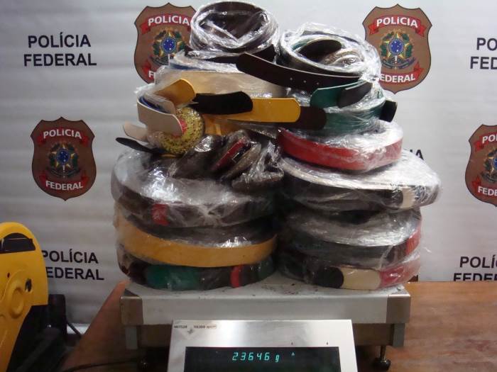 A Polícia Federal no GRU Airport – Aeroporto Internacional de São Paulo em Guarulhos prendeu ontem, 30/11, dois nigerianos por tráfico de drogas. Policiais federais que atuavam junto ao check-in de voo com destino a Cotonou, Benin, abordaram um passageiro para realização de entrevista. O homem, um nigeriano de 36 anos de idade, que ingressou no Brasil beneficiado pela Lei do Refúgio, teve suas bagagens verificadas ocasião em que foram encontrados 100 cintos femininos. Os policiais desconfiaram da mercadoria e desmontaram uma das fivelas encontrando um pó branco em seu interior. O suspeito foi conduzido à delegacia onde os exames periciais identificaram a substância como cocaína. O peso bruto do material apreendido somou mais de 23 Kg.