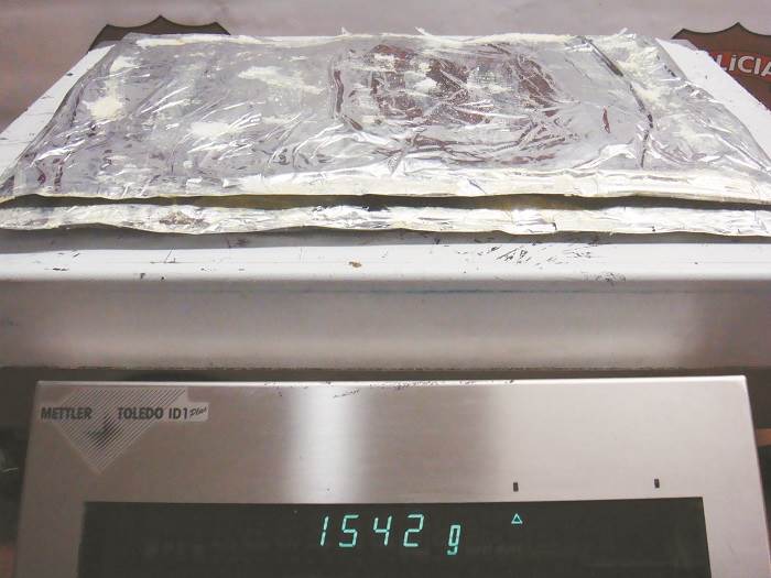 Ao passar a mala pelo raio-x foi encontrada substância orgânica escondida em fundos falsos. Na delegacia a mala foi desmontada e a substância identificada como cocaína, somando mais de 1 Kg da droga. O homem, 25 anos, foi preso em flagrante e conduzido ao presídio estadual onde permanecerá à disposição da Justiça respondendo pelo crime de tráfico internacional de drogas.