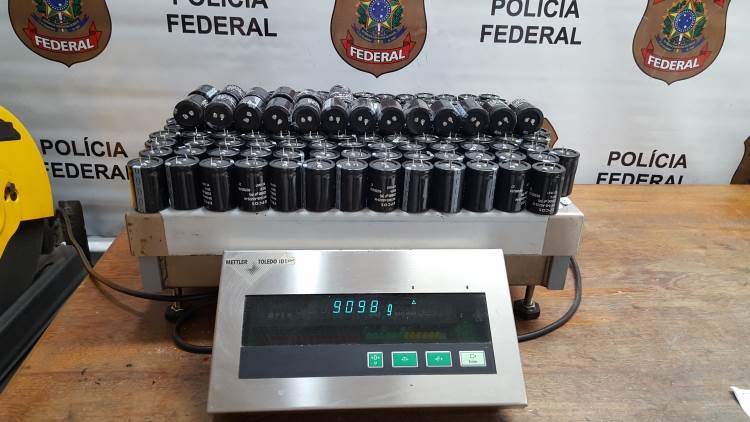 Policiais federais, que fiscalizavam a movimentação de bagagens despachadas pelos passageiros, em voo com destino Casablanca/Marrocos com conexão para Gana, desconfiaram do conteúdo de uma mala que passava pelo raio-x e localizaram o seu proprietário, que já se encontrava no interior da aeronave, para acompanhar a revista. Na delegacia, na presença de testemunhas, suas malas foram abertas e periciadas. Dentro dos capacitores foi encontrada uma substância branca que, submetida ao narcoteste, foi identificada como cocaína, cujo peso bruto somou mais de 9 Kg. O homem, 42 anos, foi preso em flagrante. Dentro de suas malas ainda foram encontrados um passaporte pertencente a terceiros e um RNE com indícios de falsificação.