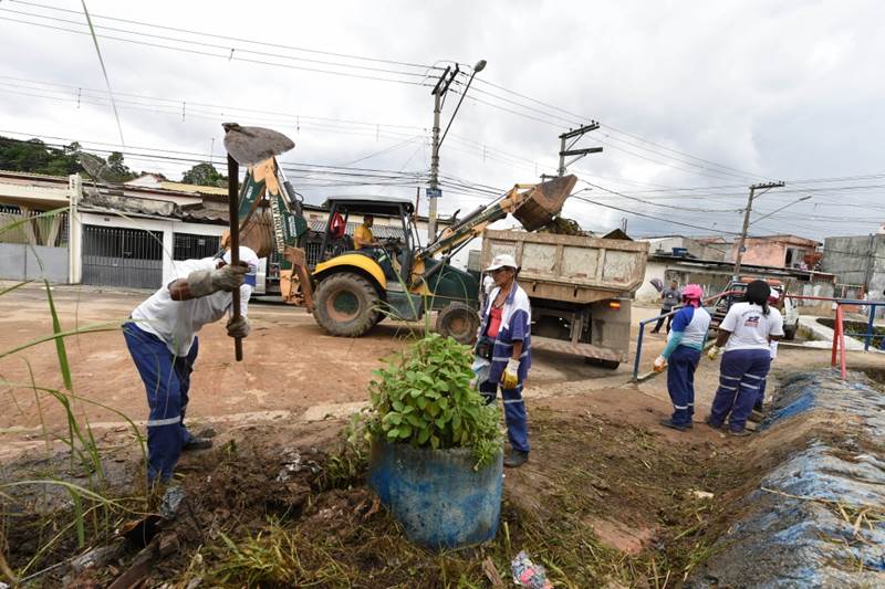 A Prefeitura, por meio do Departamento de Limpeza Urbana (Delurb) da Secretaria de Serviços Públicos, tem intensificado os trabalhos de limpeza nos córregos que cortam Guarulhos. A ação busca minimizar os problemas causados pelas chuvas que vem castigando a cidade. Na tarde da última segunda-feira (23), equipes do Delurb trabalharam em trechos dos córregos que passam pela rua Ilha Comprida, no Jardim São Paulo; e pela rua vereador Antônio Grotkowski, no Macedo. Os trabalham se concentraram na retirada de entulho, lixo e lama das travessias e das margens dos córregos.