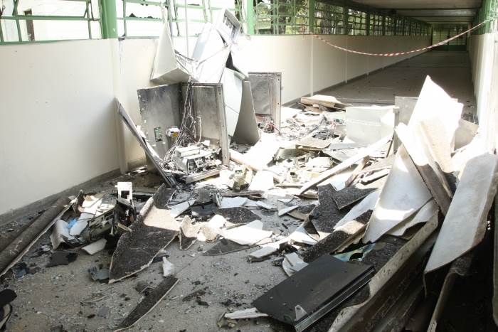 Bandidos explodiram dois caixas eletrônicos do Banco do Brasil, no Complexo Hospitalar Padre Bento, na avenida Emílio Ribas, região do Gopoúva. A ação ocorreu por volta das 4h30 esta segunda-feira (30). Os ladrões renderam o segurança de plantão com uma metralhadora, invadiram o local e, após explodirem as máquinas, fugiram levando o dinheiro. A quantia roubada não foi divulgada pela polícia.