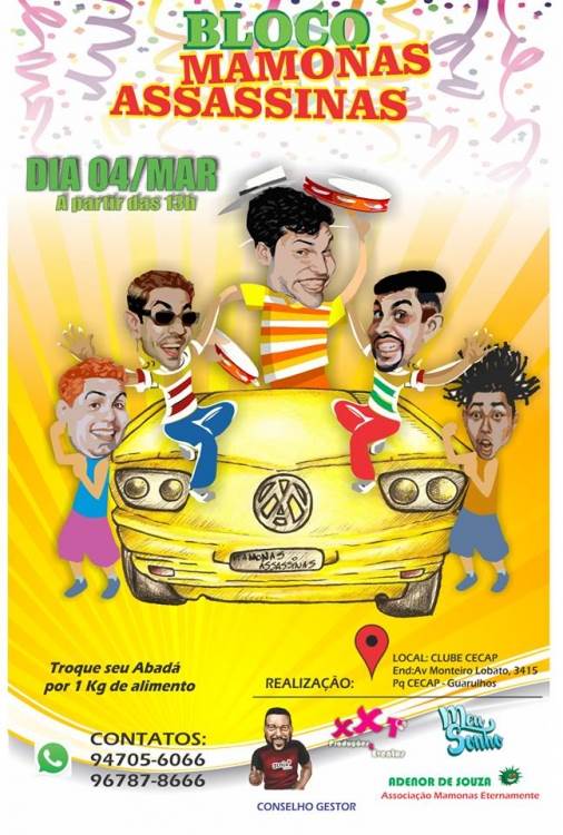 Quem achava que o carnaval acabou se enganou, e neste sábado (4), pela primeira vez o Bloco Mamonas Assassinas vai invadir o Parque Cecap. A concentração está marcada a partir das 13h no Clube do Parque Cecap, mas o encerramento da festa está previsto apenas às 22h. A criação do bloco foi ideia do organizador e um dos membros da Associação Mamonas Eternamente, Adenor Souza, que espera contar com um público de 1500 pessoas além da expectativa para que o bloco seja realizado durante o próximo ano.