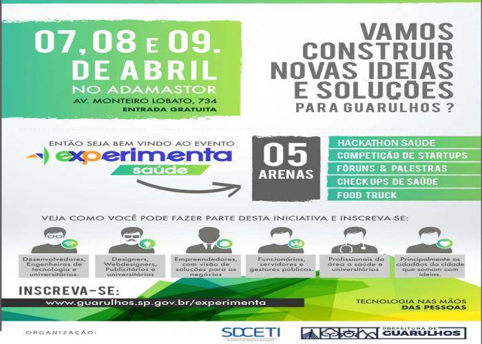 Por 48 horas ininterruptas, cientistas da computação, design gráficos e de produtos, universitários, pesquisadores e empreendedores estarão concentrados no desenvolvimento de tecnologia que possa ser aplicada à saúde pública. As melhores ideias serão premiadas com certificados e troféus. As inscrições podem ser feitas até 06 de abril, pelo site www.guarulhos.sp.gov.br/ experimenta