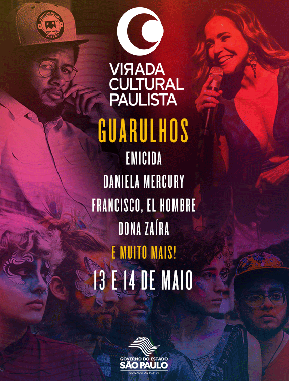 A Virada Cultural Paulista é um evento realizado pela Secretaria de Cultura do Estado de São Paulo, o que significa custo zero para os cofres da Prefeitura de Guarulhos. Assim como outros municípios que receberão artistas do referido evento, nossa cidade também foi escolhida para receber grandes atrações, que foram exclusivamente selecionadas e contratadas pela Associação Paulista dos Amigos da Arte (APAA).