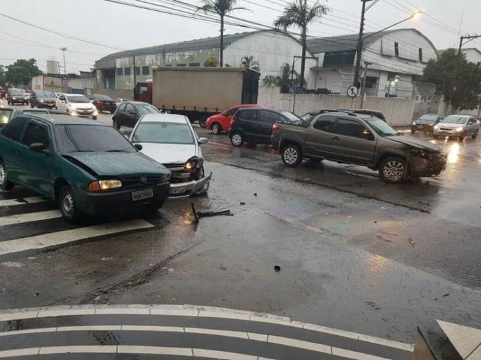 A manhã desta sexta-feira (19) começou com muita chuva em Guarulhos, causando trânsito e um acidente entre os dois veículos na rua Carlos Ferreira Endres, esquina com a rua Endres, no bairro Vila das Bandeiras.