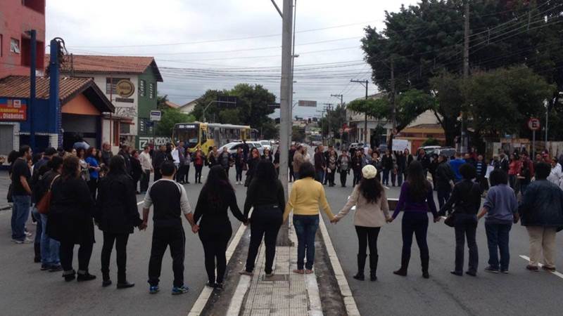 O protesto dos servidores da saúde que começou às 10h, fechou durante cinco minutos a avenida Tiradentes, com um ato simbólico, um abraço coletivo entre os funcionários do Hospital Municipal de Urgências (HMU), contra a terceirização da saúde.