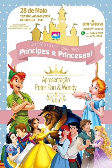 O espetáculo infantil Príncipes e Princesas, com apresentação de Peter Pan e Wendy, será realizado neste domingo (28), no Adamastor, às 15h.