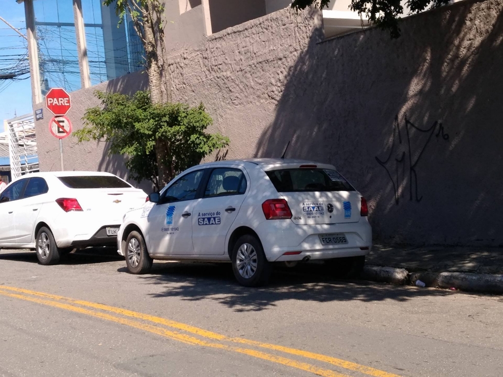Carros oficiais do Serviço Autônomo de Água e Esgoto (Saae) são flagrados constantemente estacionados em locais proibidos no Gopouva. Eles ficam ao longo da rua Mário, próximo do Centro Operacional da autarquia naquele bairro, embaixo de uma sinalização que indica a proibição para estacionar, conforme denúncia de moradores daquela via.
