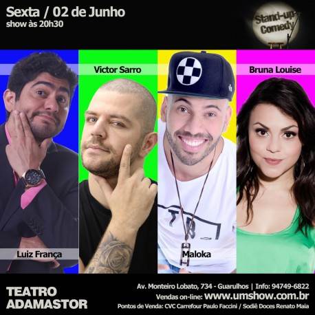 Na noite desta sexta-feira (2), o Teatro Adamastor receberá shows de stand-up comedy com apresentações de Maloka, Victor Sarro, Bruna Louise e Luiz França. O show com os humoristas começa às 20h30.