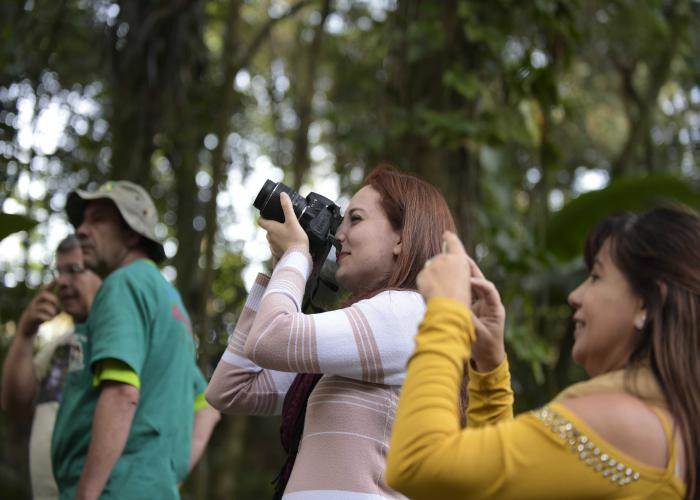 “Guarulhos possui uma rica variedade de pássaros. Um total de 349 espécies foram registradas na região no último levantamento realizado em 2015”, explica o ornitólogo amador Ramón Dueñas Nuñes que desde 2012 já conseguiu fotografar 70% delas em diversas regiões da cidade. Ramón é o monitor das sessões de observação e ajuda os participantes a encontrarem as aves, tarefa nem sempre fácil em meio à mata fechada.