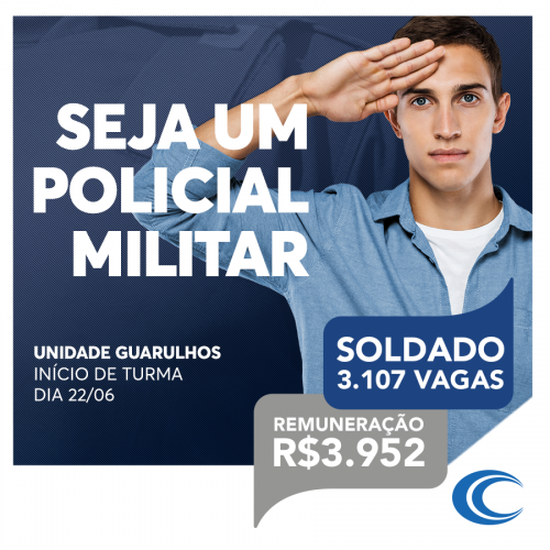 A prova deve ser realizada ainda este ano. São 3.107 vagas para o cargo de soldado da PM com remuneração (salário + benefícios) de R$ 3.952.