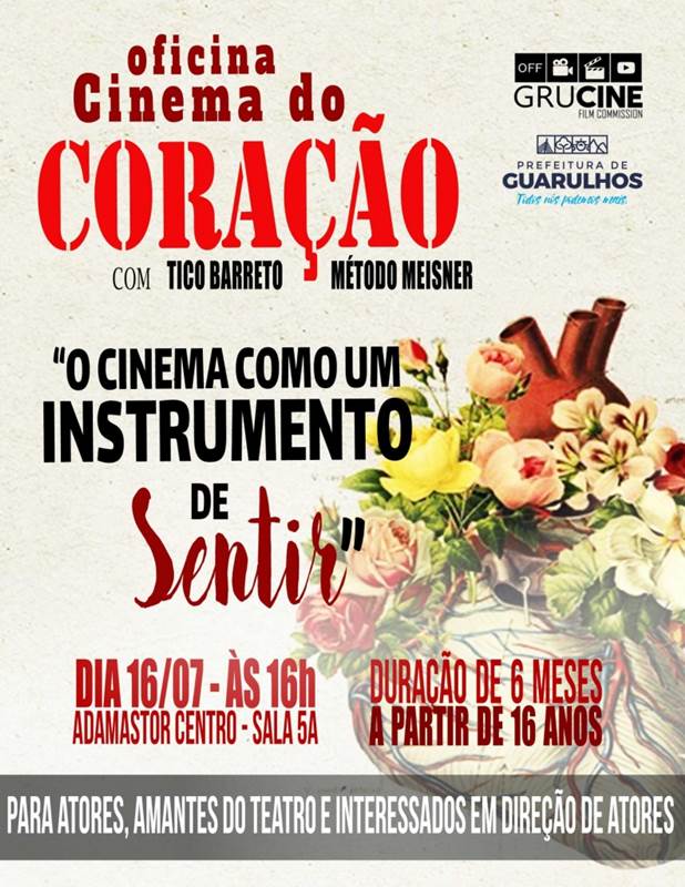 A partir do próximo dia 16, a Secel (Secretaria de Educação, Cultura, Esporte e Lazer),oferece a oficina Cinema do Coração, com o cineasta Tico Barreto. A formação, que tem duração de seis meses, é voltada para adultos e jovens a partir dos 16 anos e acontecerá sempre aos domingos, das 16h às 19h, no Adamastor Centro.