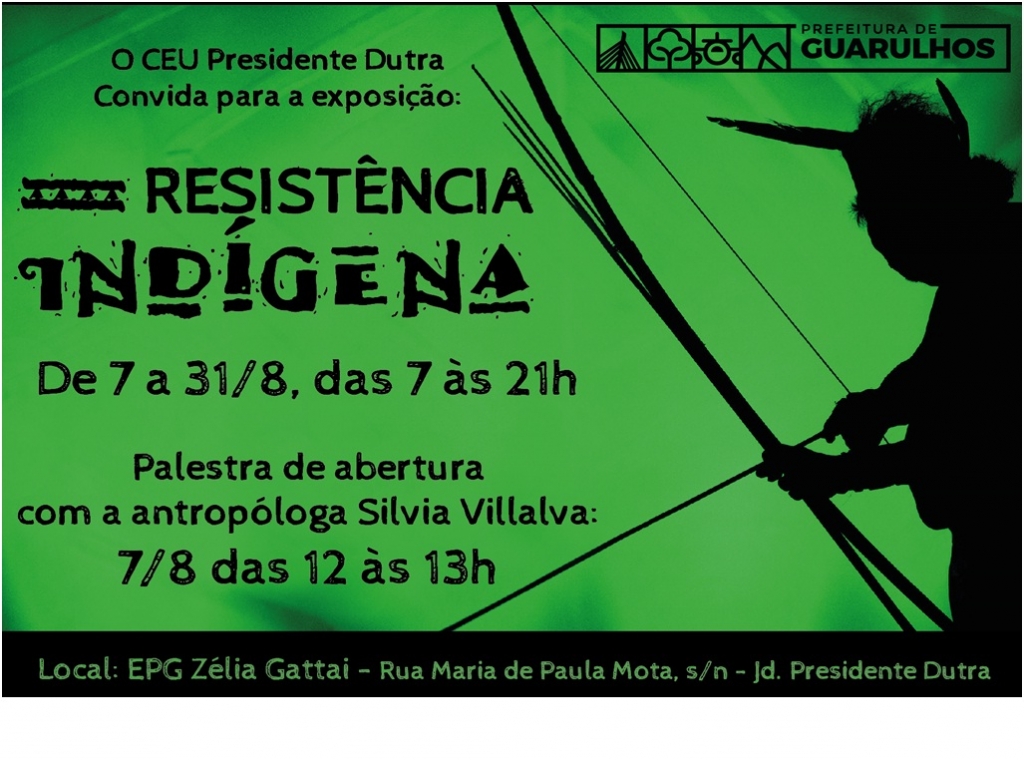 Até o dia 31 de agosto, o CEU Presidente Dutra abre espaço para a exposição “Resistência Indígena”, destacando o Mês Internacional dos Povos Indígenas.O evento é gratuito, aberto para todos os públicos e acontece diariamente das 7 às 21 horas.