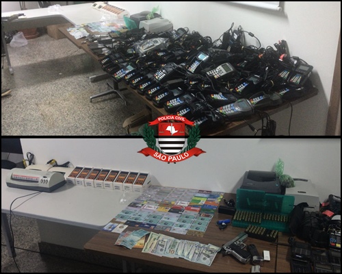 Na sequência das investigações, diligenciaram até a residência do suspeito, onde foram apreendidos 1 pistola calibre .40, 174 munições do mesmo calibre, além de 14 cartões de crédito e uma leitora de cartões. Na empresa do acusado, ainda foram apreendidos 2 computadores e 98 máquinas de cartões.