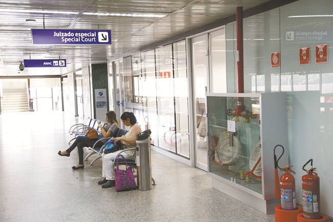 O Juizado Especial do aeroporto atende passageiro que enfrentam problemas com as companhias aéreas e buscam uma conciliação. Recebem reclamações por falta de informação, overbooking (venda de serviço em quantidade maior do que a capacidade), atrasos e cancelamentos de viagens, extravio e violação de bagagens, entre outras demandas. No local, tenta-se um acordo entre as partes. Quando não há conciliação, a demanda vira processo, que é encaminhado para o juizado do domicílio do reclamante, mesmo que em outro estado.