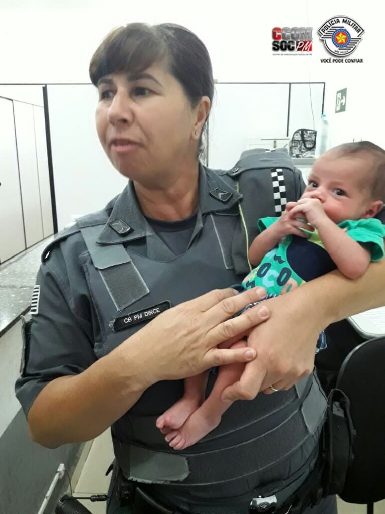 Policiais militares do 15° batalhão salvaram um bebê de apenas 23 dias que estava engasgado com as vias aéreas obstruídas por leite materno.O bebê chegou ao batalhão por meio da avó, que trouxe a criança que já estava roxa nos braços, e logo os policiais começaram a realizar manobras de Heimlich, com o objetivo de induzir uma tosse na criança para que ela possa expelir o objeto da traqueia da vítima.
