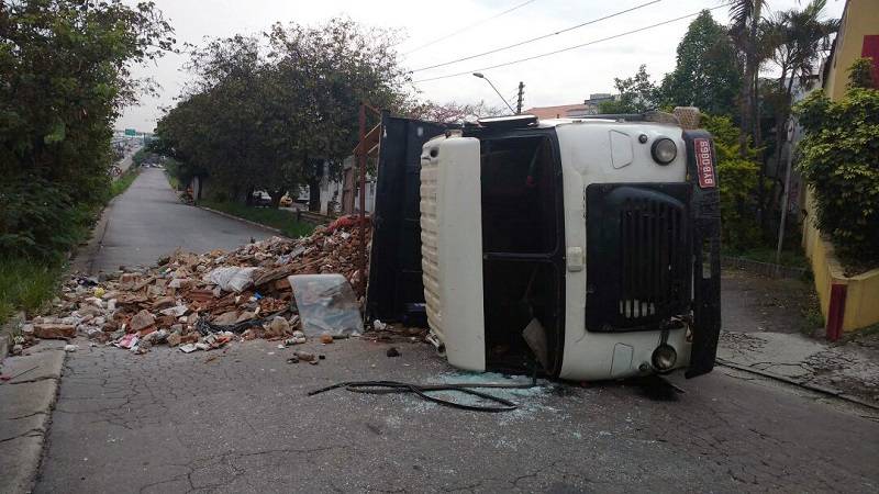 Fiscais do Departamento de Limpeza Urbana (Delurb) da Secretaria de Serviços Públicos (SPP) apreenderam nesta segunda-feira (30) um caminhão carregado com resíduos de construção civil, na altura do número 102 da rua Genaro Vigorito, na Vila Augusta. A equipe chegou ao local após incidente que causou o tombamento do veículo.