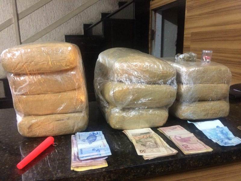 Ao realizar a busca pessoal nos suspeitos, foi encontrado porções de cocaína na vestimenta de três passageiros. Ao realizar a vistoria veicular, localizaram no porta malas duas bolsas com dez tijolos com uma substância esverdeada, de aparência com a maconha.