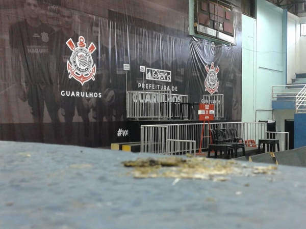 No último sábado (20), a equipe de vôlei masculino do Corinthians-Guarulhos recebeu no ginásio Poliesportivo Arnaldo José Celeste, o time do Sesc-RJ. Além do adversário, o escrete do técnico Alexandre Stanzioni também teve de driblar os problemas estruturais do equipamento esportivo do bairro da Ponte Grande, que segundo a Confederação Brasileira de Vôlei (CBV) pode causar prejuízos ao time.