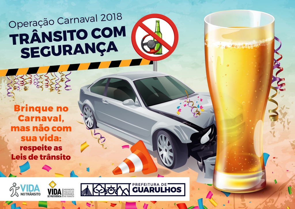 Guarulhos promoverá a Operação Carnaval 2018 – Trânsito com Segurança, em uma ação conjunta voltada à segurança no trânsito com a participação de diversas instituições e corporações, que integram o Grupo de Segurança Viária do município, como a Secretaria de Transportes e Trânsito (agentes de transporte e trânsito e educadores de trânsito), Grupamento de Trânsito da Guarda Civil Municipal (GTRAN), Polícia Rodoviária Federal, Polícia Militar e Secretaria Municipal de Saúde. A ação será iniciada nesta quinta-feira (8) e se estenderá por todo o período de folia até o dia 14, Quarta-feira de Cinzas.