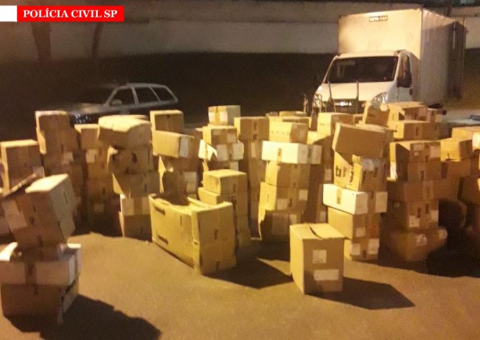 A dupla foi detida em flagrante. Foram apreendidas 203 caixas de roupas, avaliadas em R$180 mil, que foram entregues ao representante da empresa.