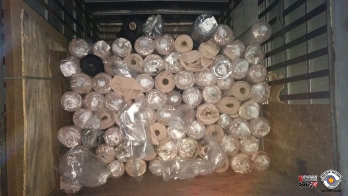 No endereço indicado, os PMs encontraram 81 volumes de tecidos – equivalentes a R$ 79.535. No local, ainda havia duas placas de carro, sendo uma delas pertencente a um veículo furtado.