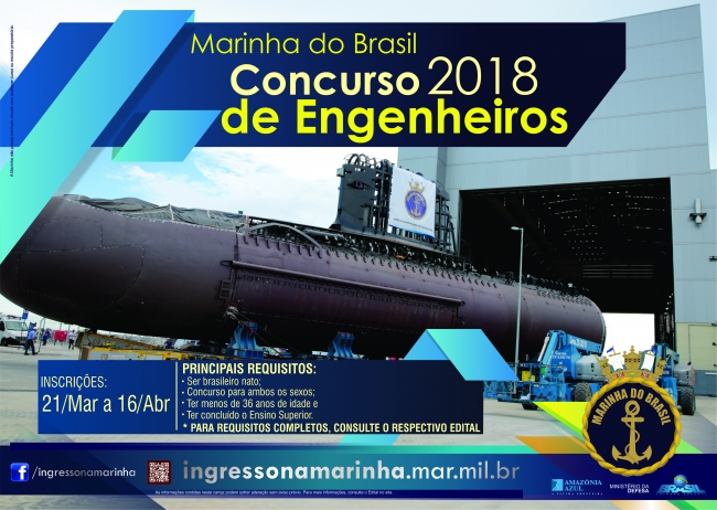Estão abertas as inscrições para o Concurso Público do Corpo de Engenheiros da Marinha com 64 vagas. Para concorrer, é necessário ser brasileiro, de ambos os sexos e ter menos de 36 anos. Em 2018, abriram 14 especialidades em Engenharia, além de Arquitetura e Urbanismo.