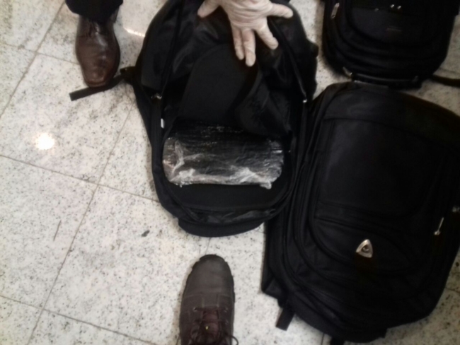 Policiais federais, que atuam na fiscalização dos passageiros que embarcam em voos internacionais, abordaram duas pessoas na fila do check-in de voo com destino a Joanesburgo, na África do Sul. Os homens, de 21 e 25 anos de idade, foram entrevistados e conduzidos para revista das bagagens em uma sala reservada. Nas malas dos passageiros foram encontradas quatro mochilas onde os policiais localizaram, dentro de fundos falsos, quatro volumes contendo uma substância com odor característico de cocaína. Os suspeitos foram levados à delegacia onde os peritos federais identificaram a substância como cocaína, cujo peso líquido somou quase dez quilos.