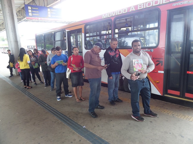 Ação: Distribuição de livros aos passageiros nos terminais de ônibus