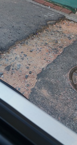 No Jardim Fortaleza, na rua Edmundo Pereira, na altura do número 263, segundo a moradora, após a reclamação, o Saae teria colocado um cascalho na parte do buraco, já que ela alega que não seria asfalto, porém, teria diminuído o impacto dos veículos, que ao passar pela via não precisam diminuir a velocidade.