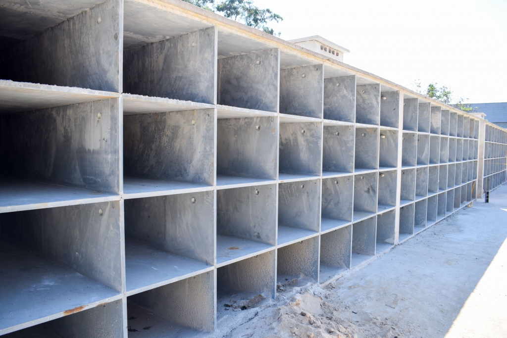 Duas frentes de trabalho participam da obra, uma na construção do radier (lajes de concreto armado em contato direto com o terreno), e outra na verticalização subterrânea. No primeiro caso, as sepulturas serão montadas com peças pré-moldadas em ardósia que se encaixam formando lóculos sobrepostos e, no segundo, serão utilizados blocos de concreto. O projeto conta também com sistema de tratamento de efluentes gasosos.