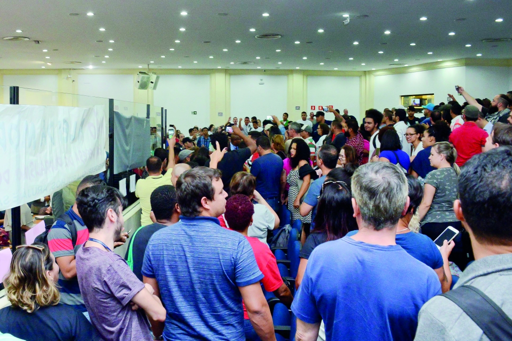 O tumulto no lado de fora da Câmara ocorreu após a não deliberação do projeto Escola sem Partido, de autoria do vereador Laércio Sandes (DEM). Com posições contrárias, integrantes do Movimento Brasil Livre (MBL), favorável à proposta, e outro grupo que defendia o arquivamento do projeto transferiram a confusão nas galerias da Câmara para as ruas.