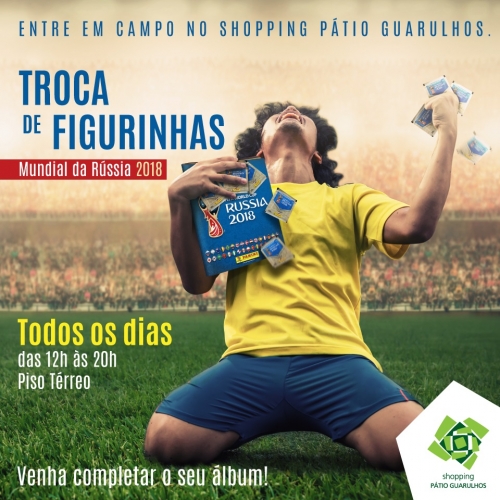 Os álbuns colecionáveis já viraram tradição com a chegada das Copas do Mundo. E agora, no Shopping Pátio Guarulhos, os apaixonados por futebol encontram um espaço exclusivo para as famosas trocas de figurinhas, com funcionamento no piso térreo do shopping até o final do mundial, das 12h às 20h.