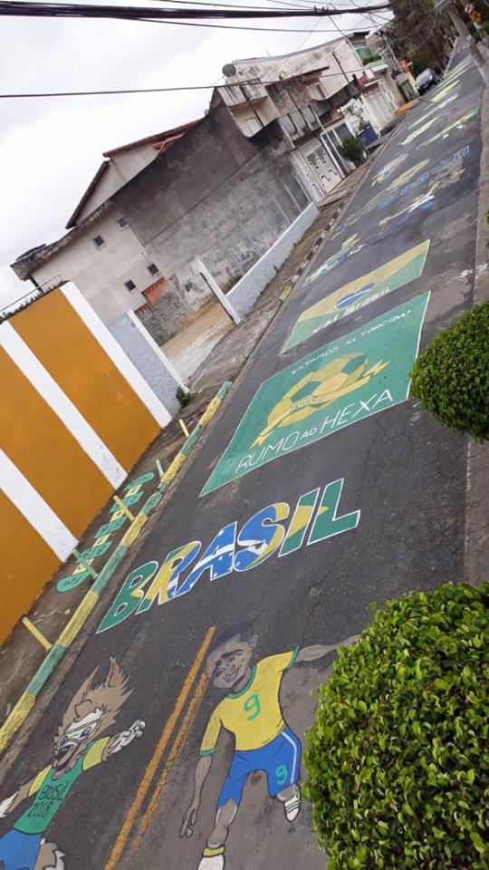 Ao todo são 12 desenhos nesta rua, grande parte em forma de caricaturas de atletas da seleção como Neymar, Gabriel Jesus, o técnico Tite e o lateral Marcelo. “Tem pessoas que estão desanimadas neste mundial, mas eu não estou assim, acredito no título do Brasil”, revelou Gabriel.