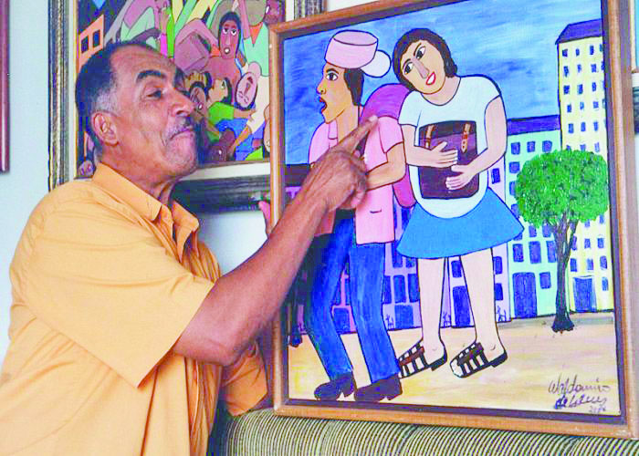 Dentre os temas presentes em suas pinturas estão o cotidiano e o folclore de sua terra natal, Itagibá, na Bahia e mostram festas populares, histórias sobre mula-sem-cabeça e lobisomens. A presença de três cachorrinhos também é uma constante em suas telas.